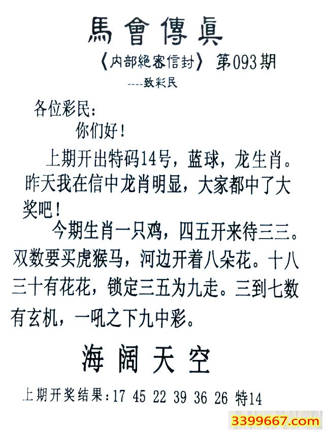 093期:首发推荐:≮馬會傳眞≯→(香港正版)