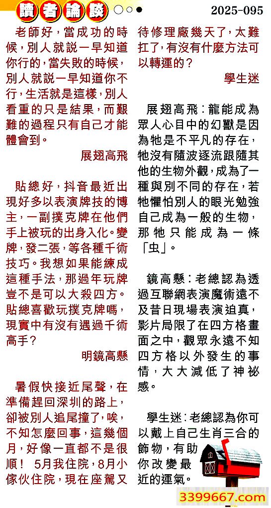 主题 :095期:彩民推荐〖貼信讀者論壇〗