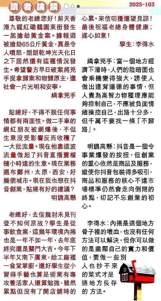 | 主题 :103期:彩民推荐贴信读者论坛 |