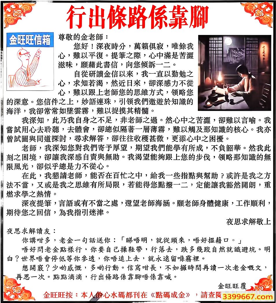 110期:金旺旺信箱彩民推荐→→《行出條路係靠腳》