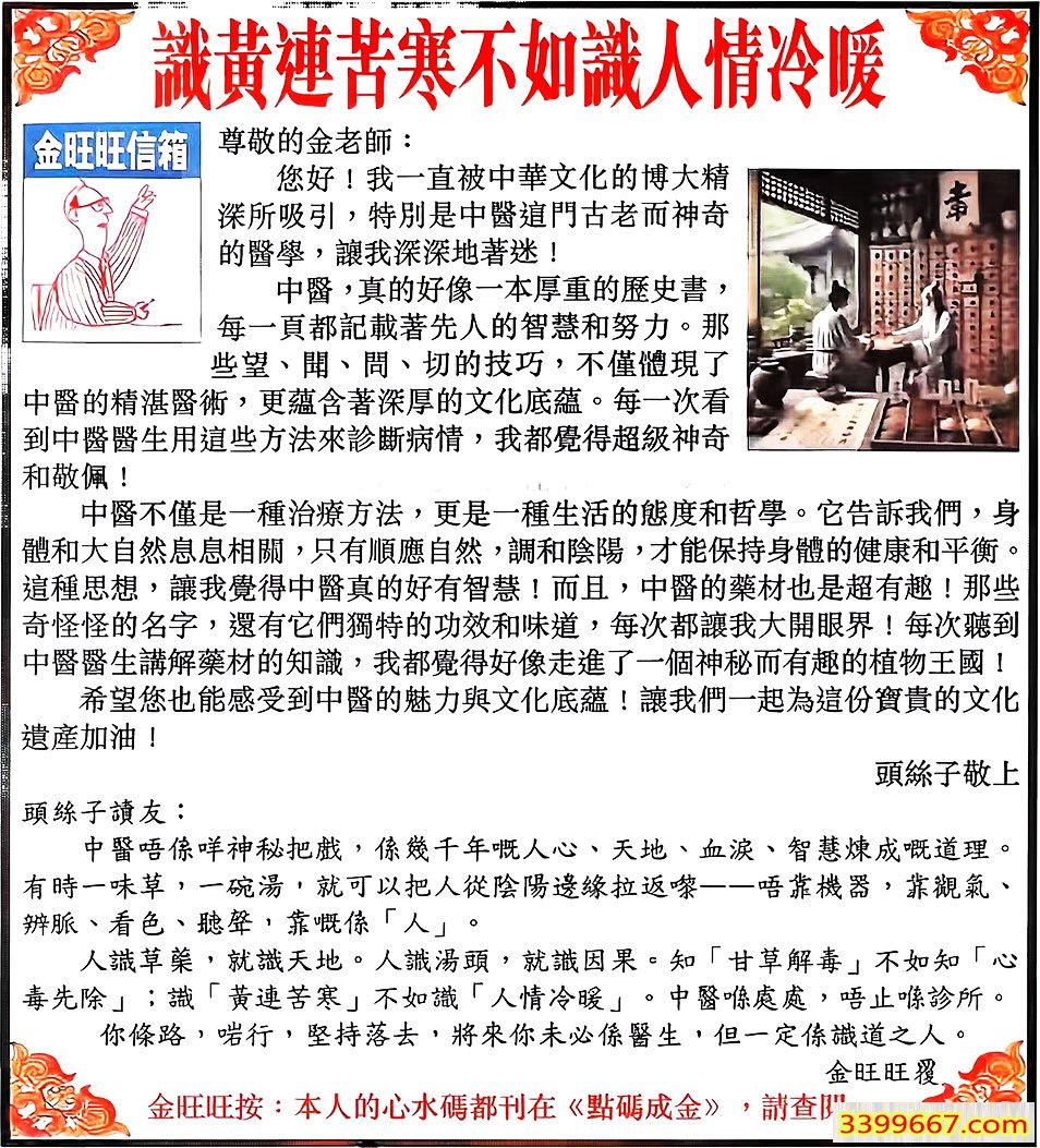 125期:金旺旺信箱彩民推荐→→《識黃連苦寒不如識人情冷暖》